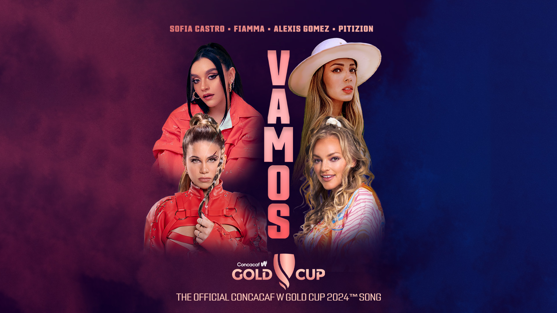 Performed by Sofía Castro, Fiamma, Alexis Gomez and Pitizion, “Vamos” connects fans with the passion and excitement of the 2024 Concacaf W Gold Cup